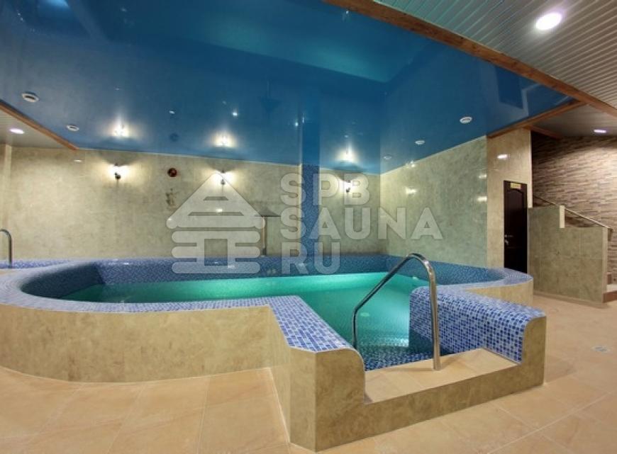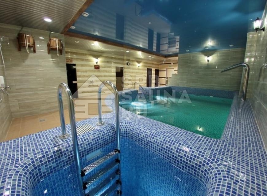 - бассейн 7х4 м, глубиной 1, 5 м, с гейзером, водопадом и противотоком;