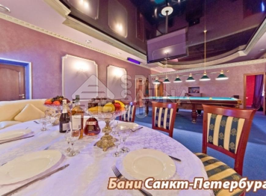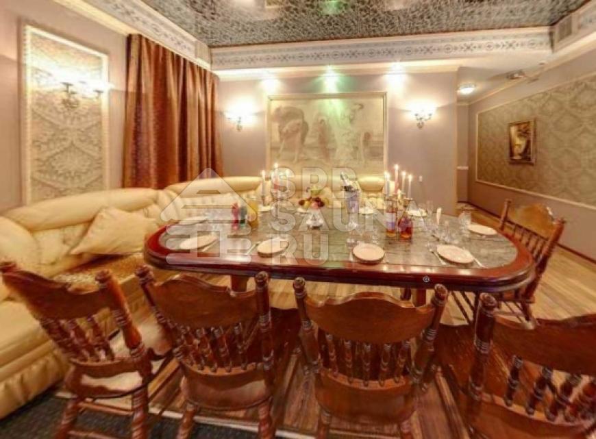Сауна № 4: русско-финская парная, джакузи на 5 человек с подсветкой, гостиная с банкетной зоной, русский бильярд.