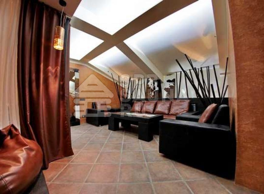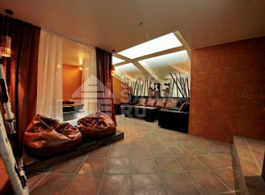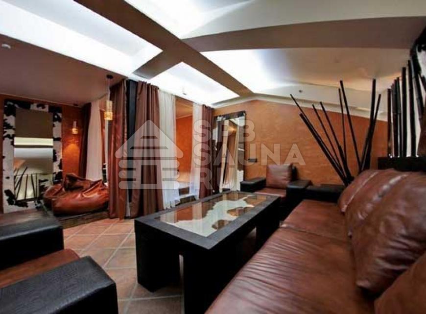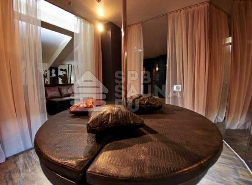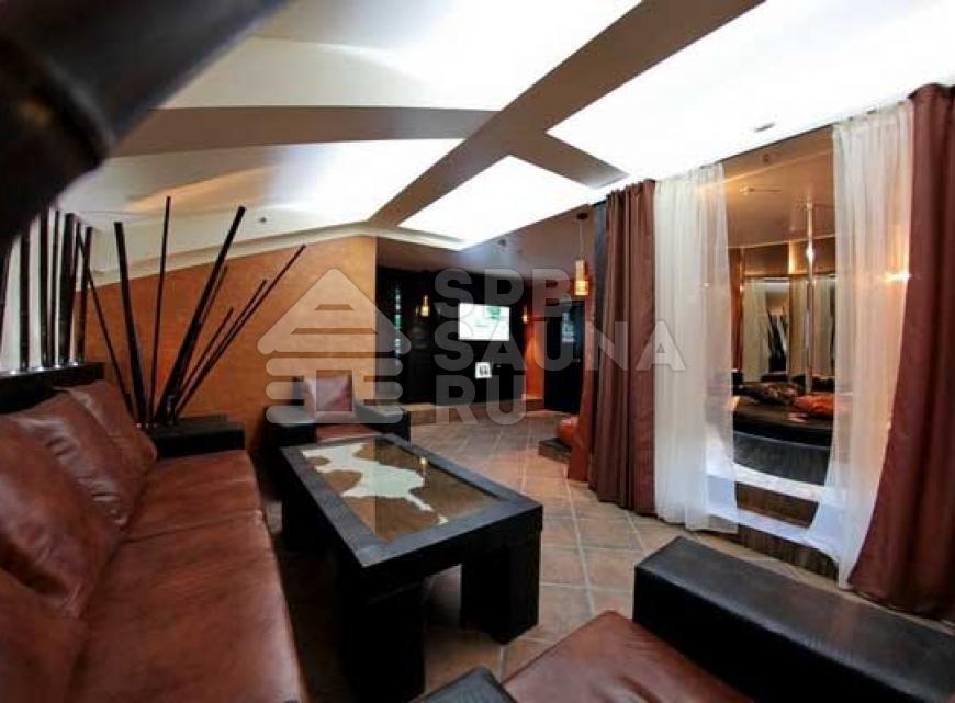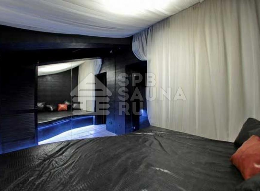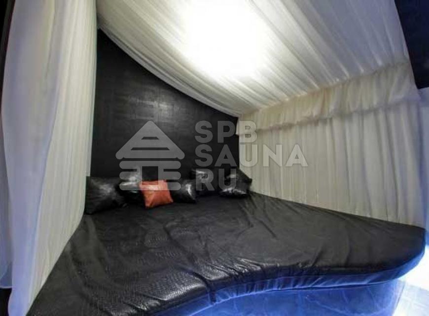 В комнатах отдыха стоят очень широкие кровати – в таких царских покоях вам будет очень комфортно отдыхать и наслаждаться впечатляющим отдыхом. Гостиные тут имеют современный дизайн – в них можно устроиться целой большой компанией и радоваться восхитительным ярким эмоциям и впечатлениям от абсолютного и радужного спокойствия. Мебель здесь подобрана со вкусом – качественная из ценной кожи. Имеется возможность заказа блюд из большого перечня напитков и разнообразных вкусных кушаний. В гостиной установлены аквариумы с хищными пираньями и другими представительницами хищной фауны морей. Центр гостиной оформлен оригинально – это широкая площадка с мягкими подушками, расположенными в самом центре. Зажигайте весело в сауне «На Лермонтовском».