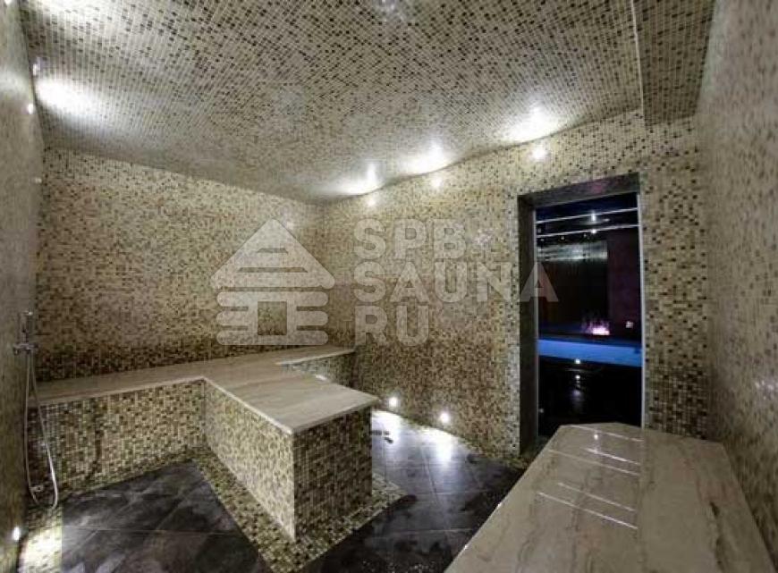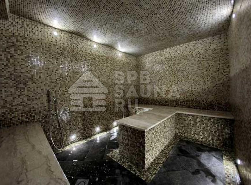 В просторном хамаме смогут разом уместиться компании из восьми человек. Хамам тут выложен красивейшей плиткой, поэтому можно наслаждаться красивейшей работой умельцев, которые воспроизвели такую красоту. Настоящая восточная парная оборудована широкими скамьями из мрамора, на которых можно вытянуться по весь рост. В хамаме нет такого раскаленного воздуха, который присутствует в финкой парилке – поэтому хамам создан для всех, кто не может перенести высокие температуры экстремального характера.