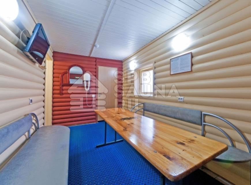 После активных процедур так приятно полноценно расслабиться и насладиться спокойствием. Для этого в сауне предусмотрена комната отдыха с мягкими диванами и потрясающим интерьером, продуманным до мелочей. Расположившись за большим столом, можно поболтать с друзьями, обсудить последние новости, выпить чашечку чая , а благодаря большому ЖК-телевизору, вы всегда сможете посмотреть спортивную трансляцию или любимый фильм.