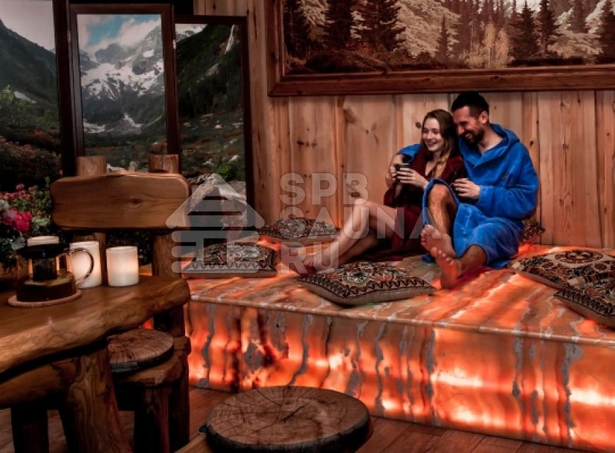 В аренду входит: аромапарение (первый заход в парную 5-10 минут, подышать отварами трав и погреться) в растопленной парной, гостевой дом, где находятся раздевалки, массажные зоны, процедурный хаммам, софа из натурального оникса с подогревом. Будет подготовлена комплектация по количеству человек (халаты, простыни, банные шапки и тапки, средства личной гигиены. На столе будут ждать чай с мёдом и лимоном.