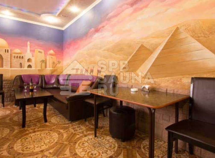 Восточный стиль интерьера сауны выполнен в единой композиции, причудливая роспись на стенах, роскошная мебель, мягкое освещение и квалифицированный персонал - будут способствовать банно-оздоровительному отдыху как души, так и тела.